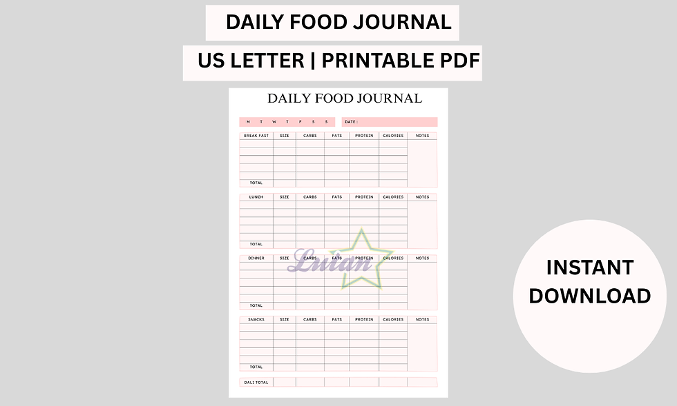 Printable Printable Daily Food Journal, Daily Food Planner, Food Tracker